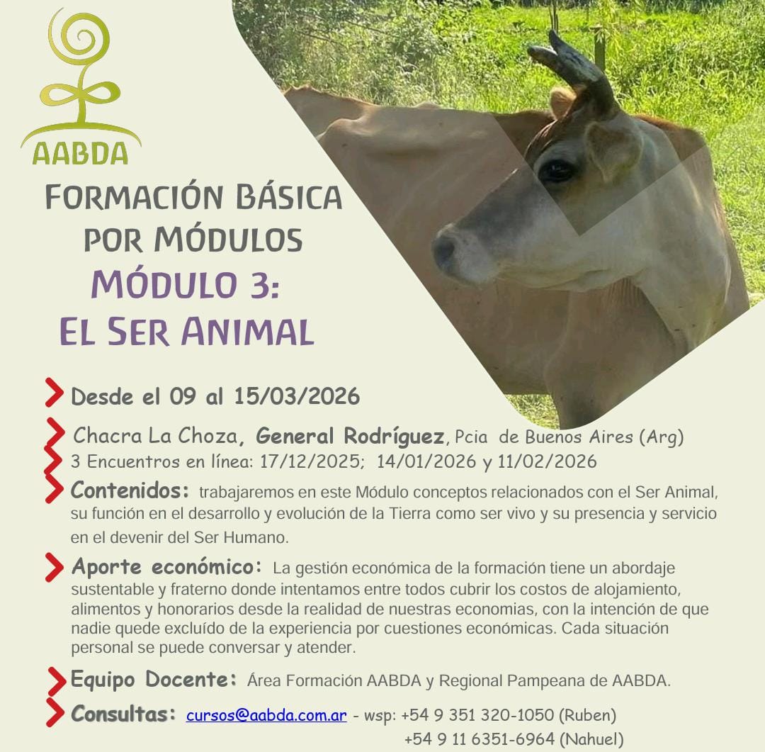 Nuevamente l@s invitamos a participar del «El Ser Animal » de la Formación Básica en Agricultura Biológico Dinámica, que tendrá lugar en Granja La Choza.